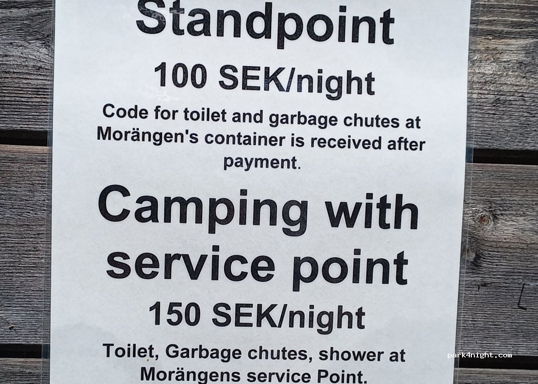 Small campsite. There are no facilities on site, but you have access to nearby showers/toilets (+/- 350m away). Nice view over the lake. There were not many other campers when we were there (mid august). Price is 150SEK per night.