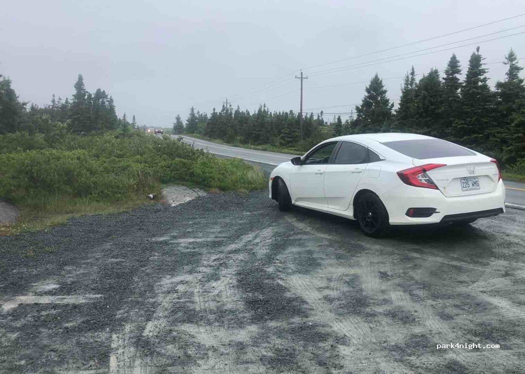 Pratique, on a dormi là. On a profité du coucher du soleil en passant la petit trail dans le bois situé directement dans le stationnement et qui prend 2 min a pied. Le soir pas de lumière mais c’est parfait car pas de voiture.