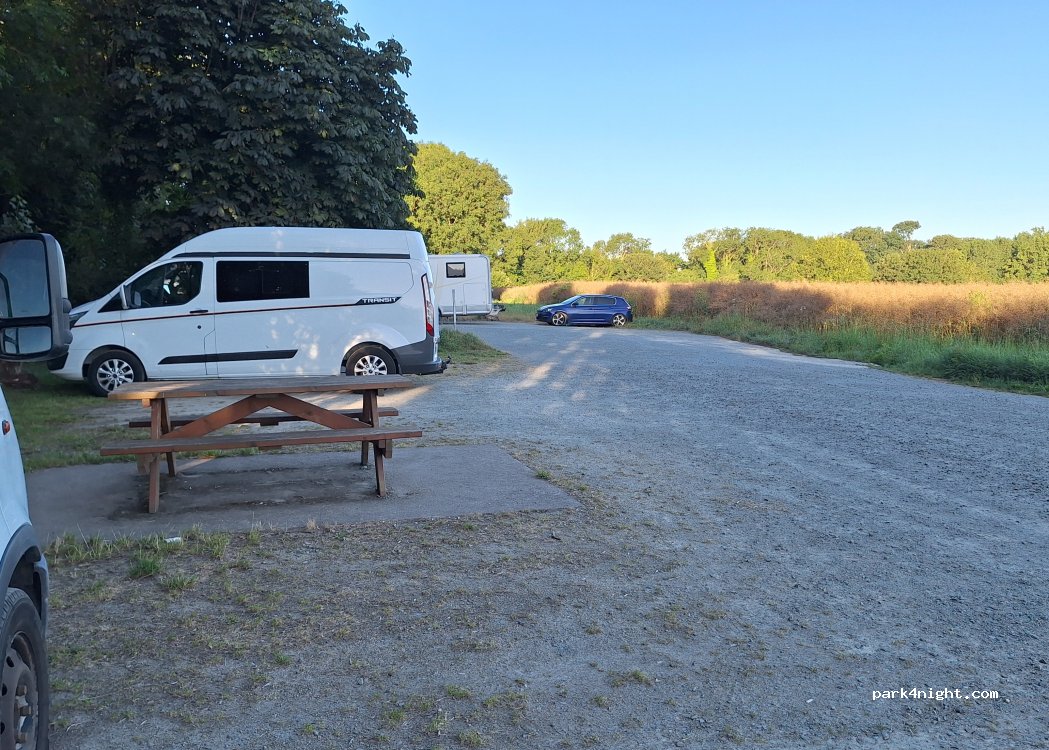 Super vue, plat et plusieurs tables à disposition. Merci la mairie. Complet en ce soir d'août avec une vingtaine de véhicules. La route passante est très proche. Capte bien les réseaux Orange et sfr.