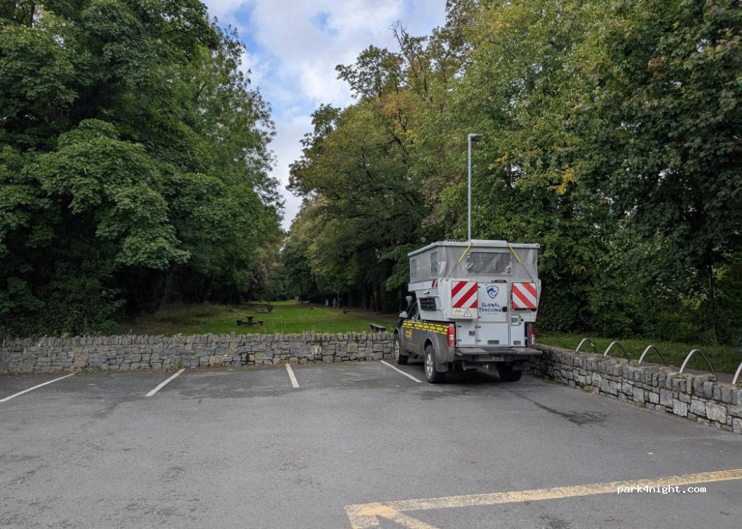 Un petit parking dans le parc près de la promenade du Canal à Kilkenny, avec dix places au total. L'espace est suffisant pour manœuvrer, même si les places sont un peu étroites, mais la longueur ne pose pas de problème. Il est recommandé de ne pas garer plus d'un camping-car ou d'un caravane à la fois afin d'éviter de surcharger le parking. C'est idéal pour promener les chiens, avec des bancs de pique-nique juste à côté. Le centre de Kilkenny et le château sont à environ vingt minutes à pied. Nous n'y avons pas passé la nuit, nous nous sommes juste arrêtés pour déjeuner, mais nous n'avons vu aucun panneau interdisant le stationnement. Cela dit, un homme nous a dit que certaines personnes viennent ici le soir pour boire un verre, bien qu'un panneau indique également que l'alcool est interdit. Malgré cela, l'endroit semble assez calme et agréable pour passer la nuit.