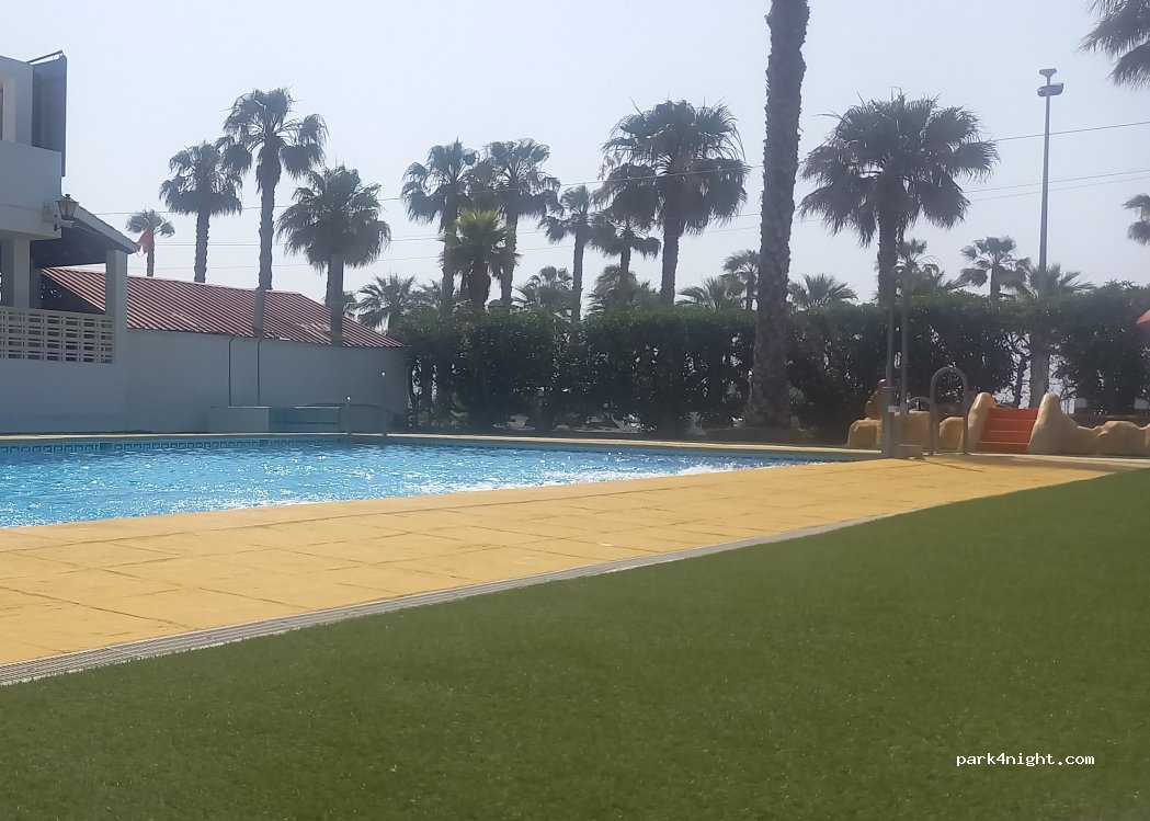Campsite Playa dr Poniente near a very large, beautyful and guarded beach. Swimming pool very comfortable, with friendly lifeguards & aquaaerobic. Clean and large sanitaries. Minimarket and restaurant at front