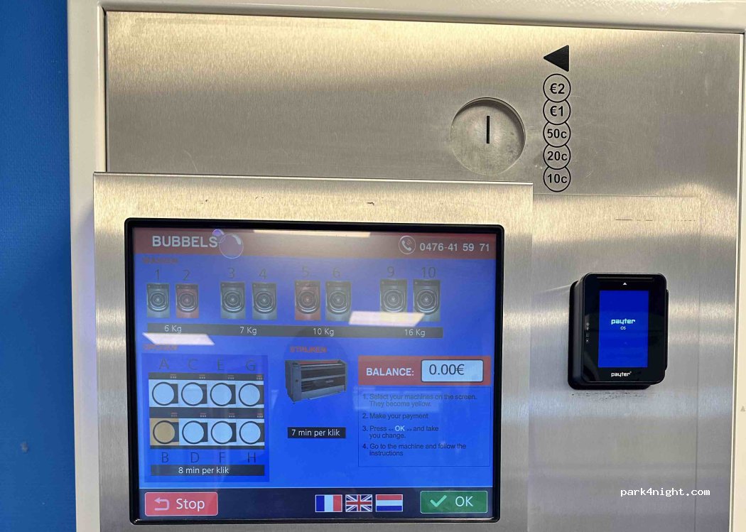 Wasserette 7 dagen per week geopend van 7.00 tot 22.00 uur.