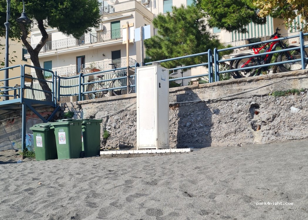 Doccia pubblica sulla spiaggia. L'acqua fredda costa 50 centesimi. L'acqua calda costa 1 euro.