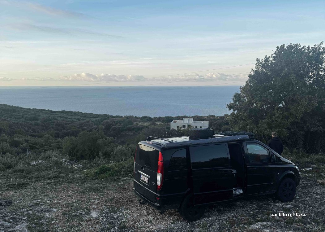 Bella vista sul mare, va bene per una notte visto la vicinanza con il paese. sono salito senza inserire il 4x4 ma immagino che per un veicolo più pesante sia necessario.