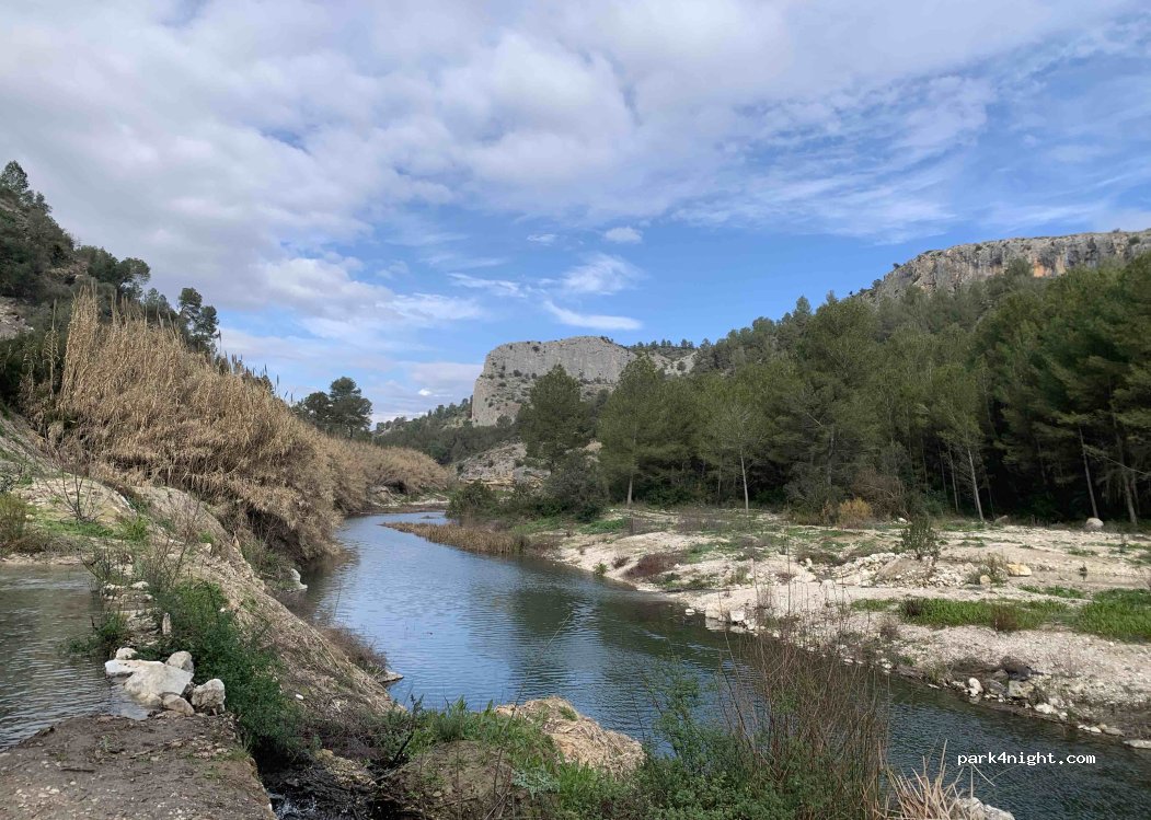 Paraje muy recomendable para hacer senderismo, bicicleta, etc. Se puede pernoctar, verter todas las aguas, repostar agua potable, utilizar las barbacoas (en invierno) y mesas para picnic, por sólo 2€, como ya han comentado varios, pero además se puede conectar al punto de luz por 5€/día. Hay que contactar con el Ayuntamiento de Bellus.