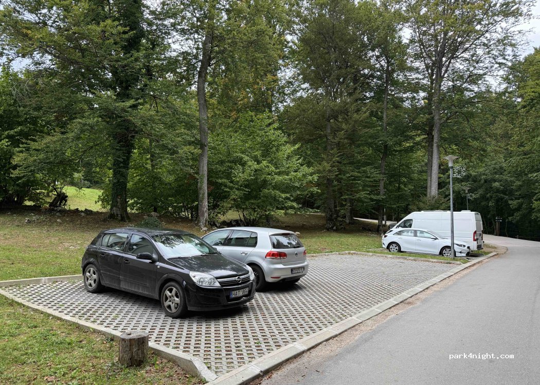 A residential area where you can park. There are no parking signs. It's a perfect place to walk from here to Plitvice Lakes National Park (about a 20-minute walk along a beautiful path to the entrance).