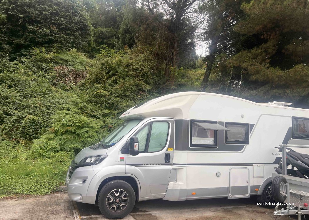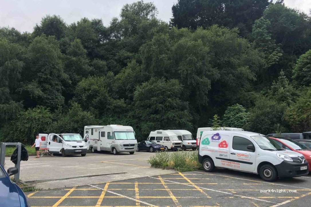 Brilliant place to park. The motorhome site two km away was full. We drove here and parked. Very quiet. Birds singing. Didn't feel unsafe at all. Great place ... and free. Bus stops right outside the entrance. Bilbao was brilliant!