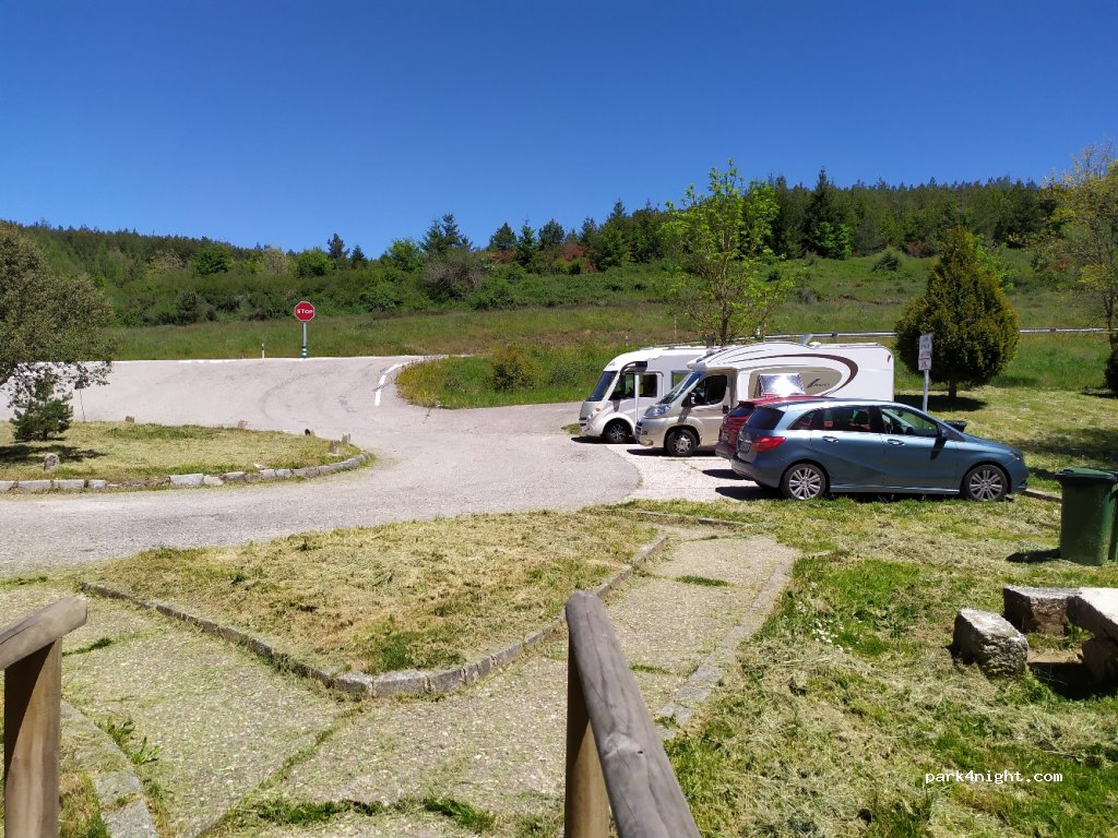 A tocar de la carretera i, per tant, sorollosa. No aconsellable per a passar-hi la nit. Sense ombra als llocs d'aparcament. Font d'aigua "no potable", només apta per a refrescar-se. Taules i bancs de pedra més decoratius que pràctics.