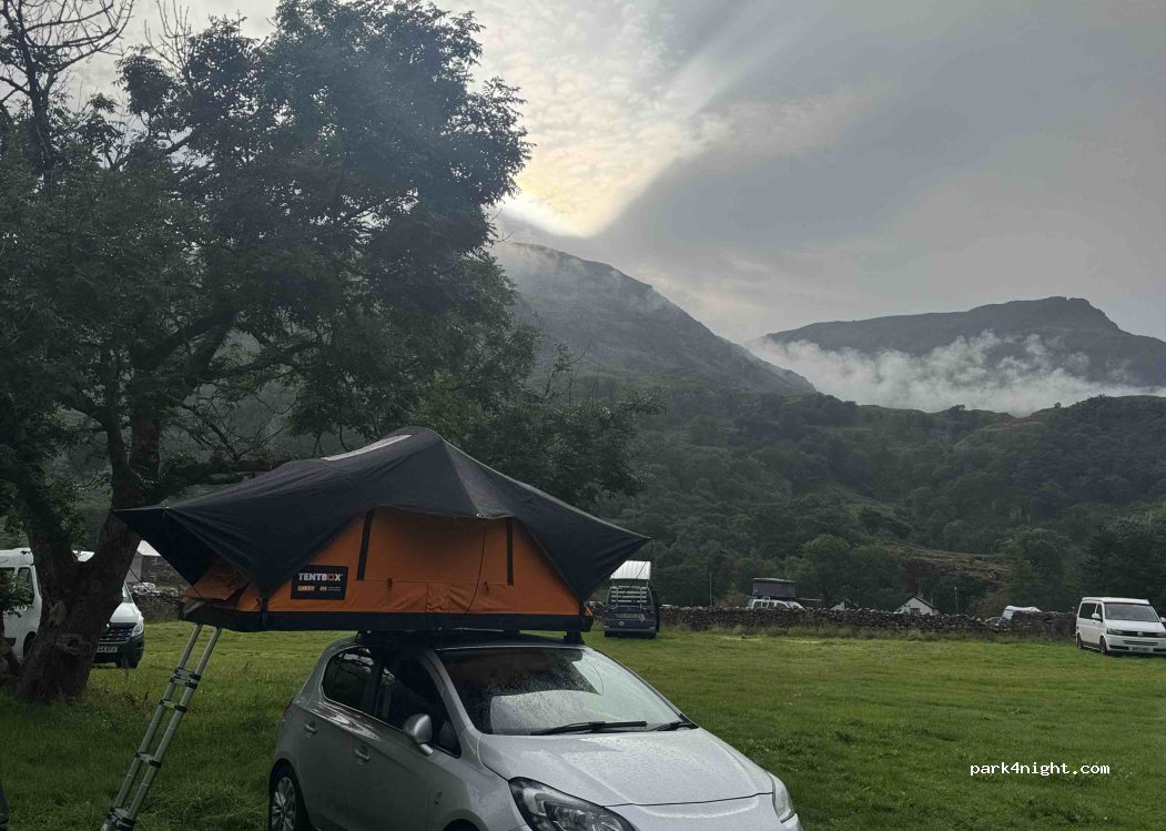 Excellent place to spend a night or two if you don't need any fancy facilities. Toilets and showers are okay considering the price. Views amazing! We spent 2 nights, payed 10 pounds plus 1 for shower. Easy to leave the car there while going to Snowdon trails by bus, so you don't need to pay more for parking. Bus stop is near, aswell a great pub.
