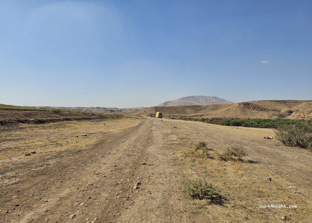 Sitio junto a un río. También se puede ir en coche directamente al río, pero el internet no es tan bueno allí, o se puede aparcar en otro lugar. Teníamos 4G con Asiacell en el sitio registrado. Unos 3 km de camino de grava. El último tramo está muy embarrado cuando llueve. Hay algunos pastores durante el día. Muy tranquilo por la noche. El río sigue fluyendo bien (en octubre). El agua es cristalina.