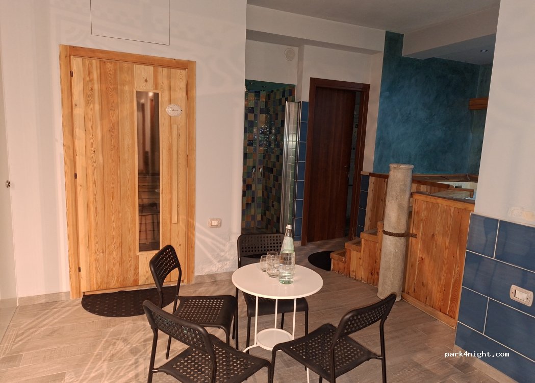 Prenez le temps de vous ressourcer, de prendre soin de vous grâce à la gastronomie, aux promenades et au centre de bien-être. Sur place, vous trouverez une fontaine d'eau potable et l'électricité est disponible sur demande. Le week-end (vendredi, samedi et dimanche), le restaurant du Domus Otium est ouvert pour le déjeuner et le dîner. Le centre de bien-être et la piscine sont ouverts toute la semaine. Le parking est gratuit pour les clients déjeunant ou dînant sur place. Sinon, il faudra payer. Dans tous les cas, vous serez accueillis par deux personnes exceptionnelles : Ivan (un véritable expert en la matière) et Valentina, les propriétaires de ce petit coin de paradis. Les 200 derniers mètres se font sur un chemin de terre en montée, mais cela ne pose aucun problème aux campeurs. N'oubliez pas de prendre la sortie ATENA LUCANA et de suivre le GPS uniquement après avoir quitté l'autoroute.