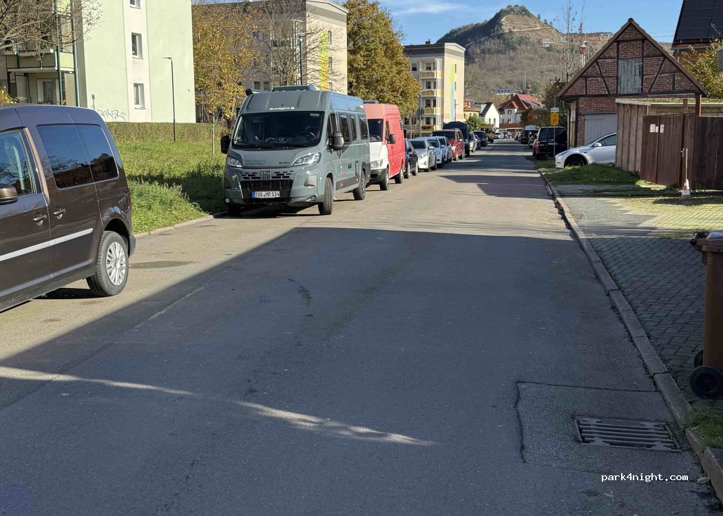 Einfacher Parkplatz in einem Wohngebiet. Er ist sehr ruhig gelegen, in der Nähe einer Schule und eines Kindergarten.