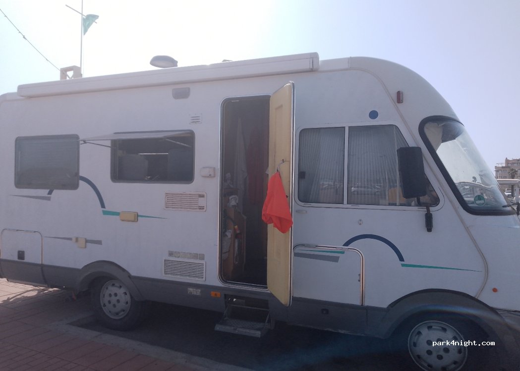Zona de aparcamiento al lado de un paseo marítimo, muchas personas paseando a las 23:00 horas en julio. Aparcamos al final del paseo pero se reunió un grupo de chavales, algunos con motos, con música a elevado volúmen. Decidimos irnos. Si no fuera por esto, el sitio está bien, no para vehymuy grandes. La playa tiene duchas y hay restaurantes, supermercados cerca.