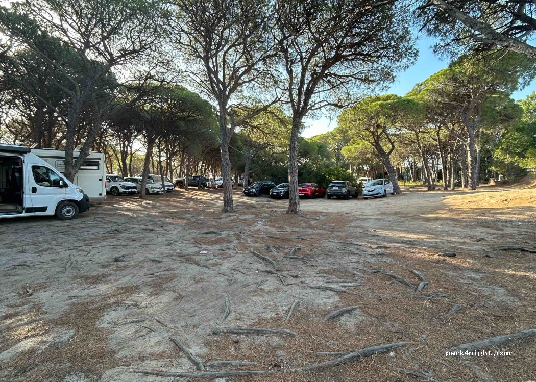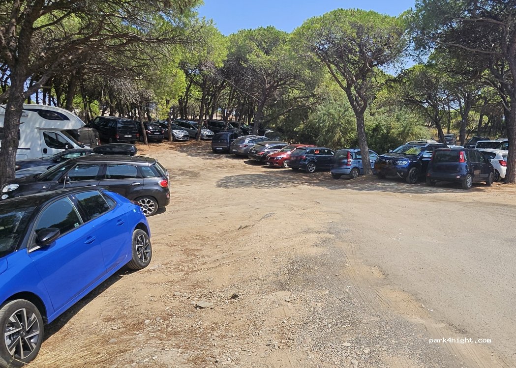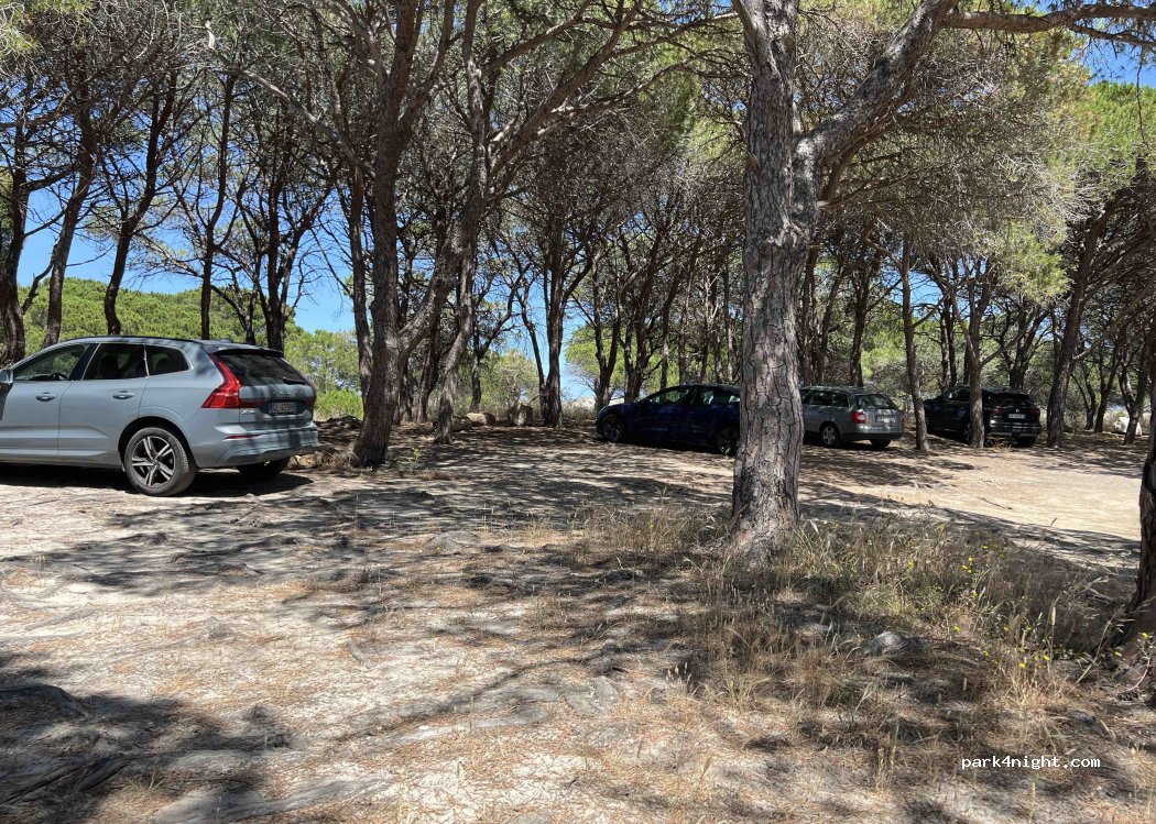 Parcheggio in pineta vicino alla spiaggia. Nessun divieto e gratuito