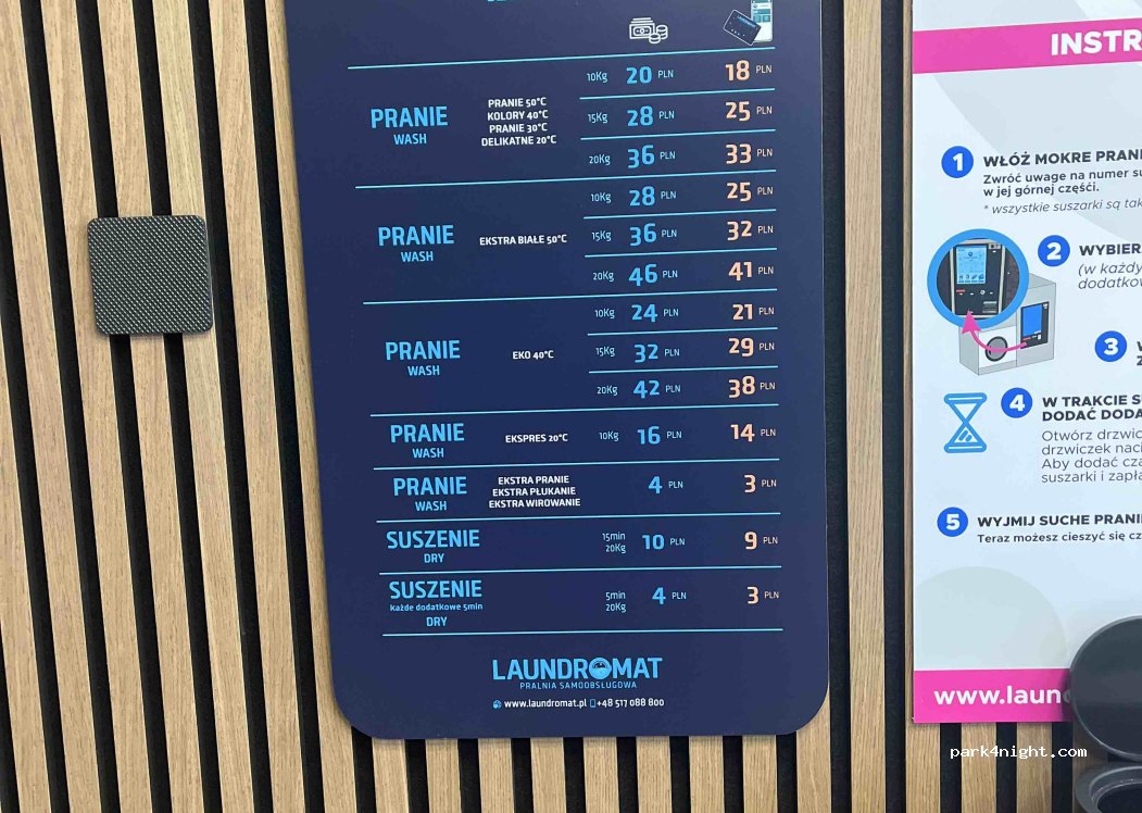 24pln/10kg washer 10pln/20kg 20min dryer