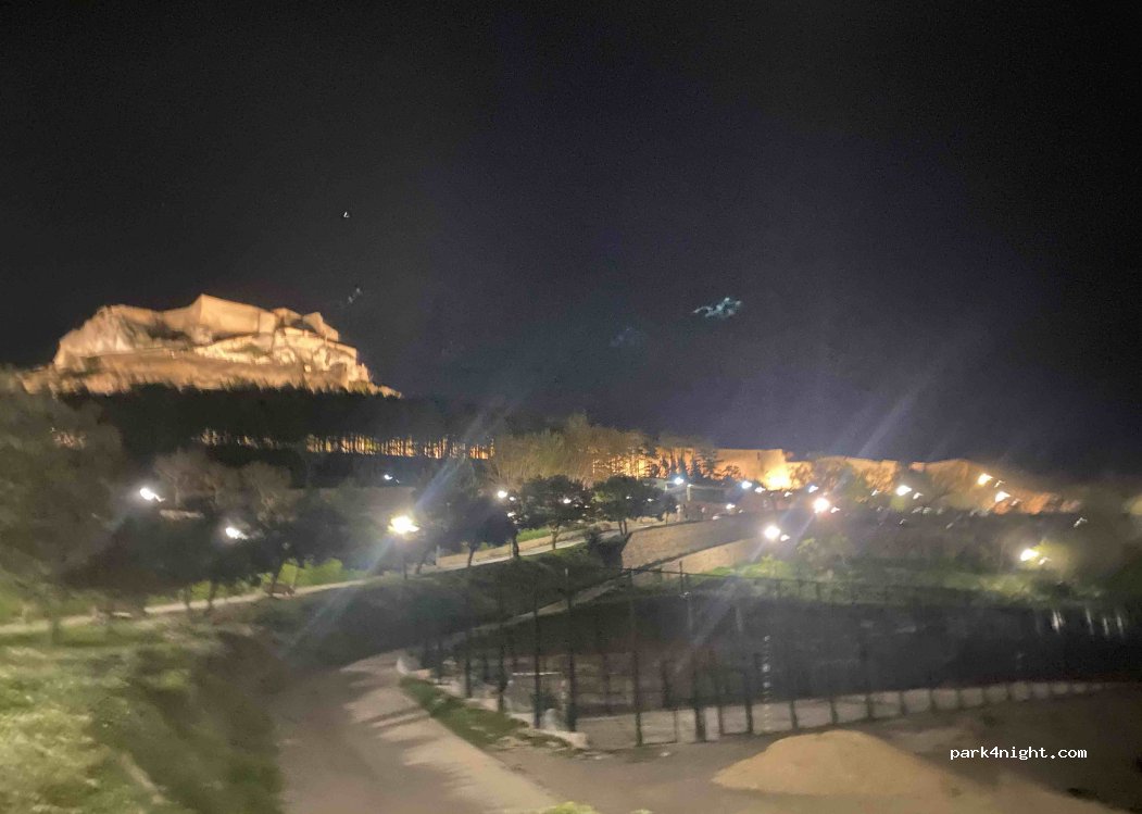 Desnivelado pero se puede dormir. Esta justo al lado de las plazas de pago de zona azul, allí es gratuito. Va pasando la policia, con extra de seguridad. Sombreado por pinos, buena vista. A 5 min de la muralla y el centro en nada. Bien ubicado. De dia hay coches pero mucha rotación, permitiendo que si de noche quieres cambiar de plaza no hay problema.