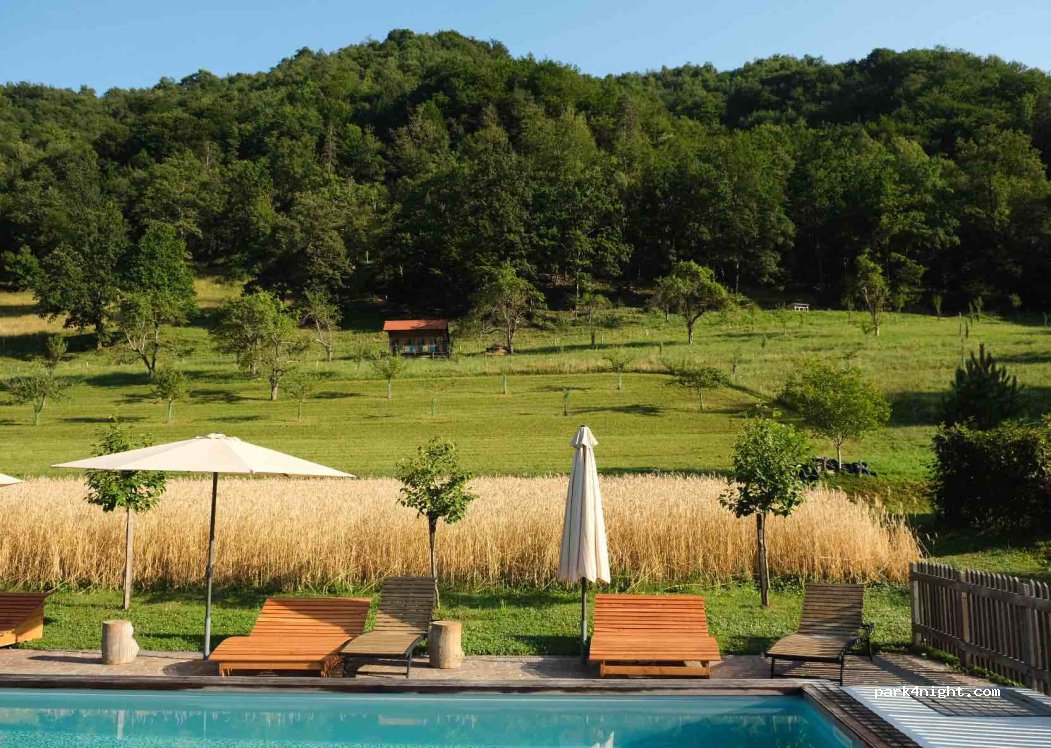 Oh mein Gott, was für ein toller Ort. Wir haben selten soooo lecker gegessen/getrunken (wir sind sehr viel unterwegs). Wenn ihr dort seid, unbedingt das Essen buchen. Abgelegen, rund herum außer einer Straße "nichts" (nachts ruhig). Wunderschöner Pool, nette Besitzer. Wollten die am Baumhaus ausgeschriebene (einfache) Route laufen, sehr viele Zecken und Weg irgendwann mit Gestrüpp versperrt.