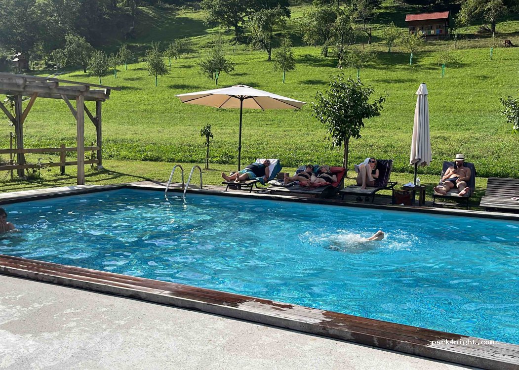 veel beter dan dit ga je niet vinden voor zo een lage prijs. heel vriendelijke huiselijke eigenaars. neem zeker ook het dinner bij je verblijf het is enorm lekker en ze koken met eigen produkten. als extra troef is er dan nog het zwembad dat iedereen mag gebruiken. na 11 dagen slovenie met park4night was dit wel onze top locatie.
