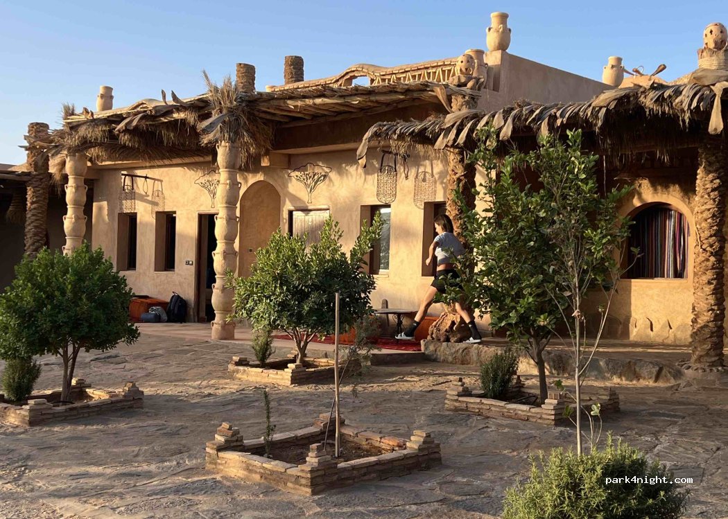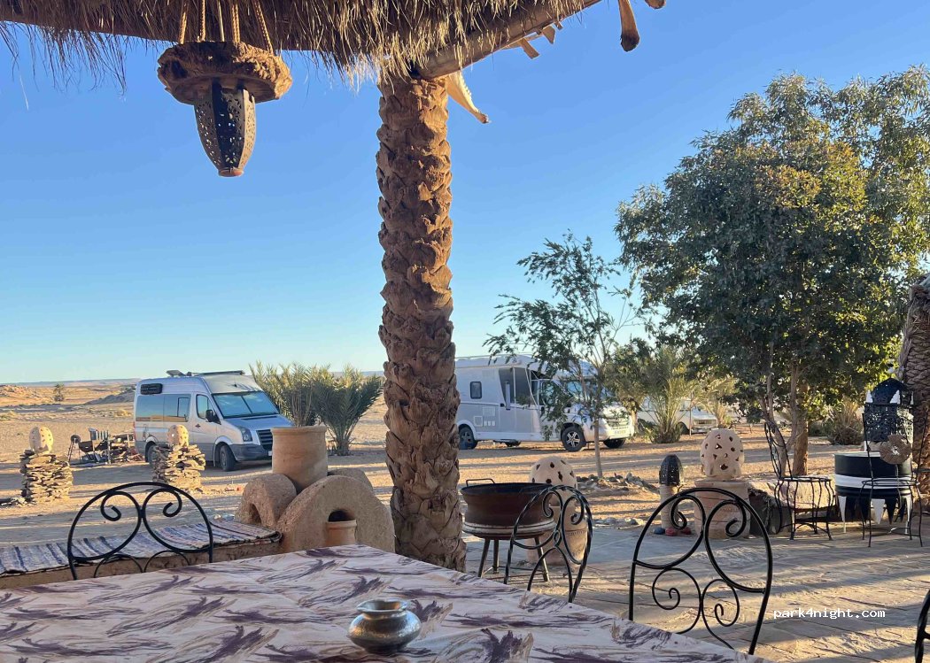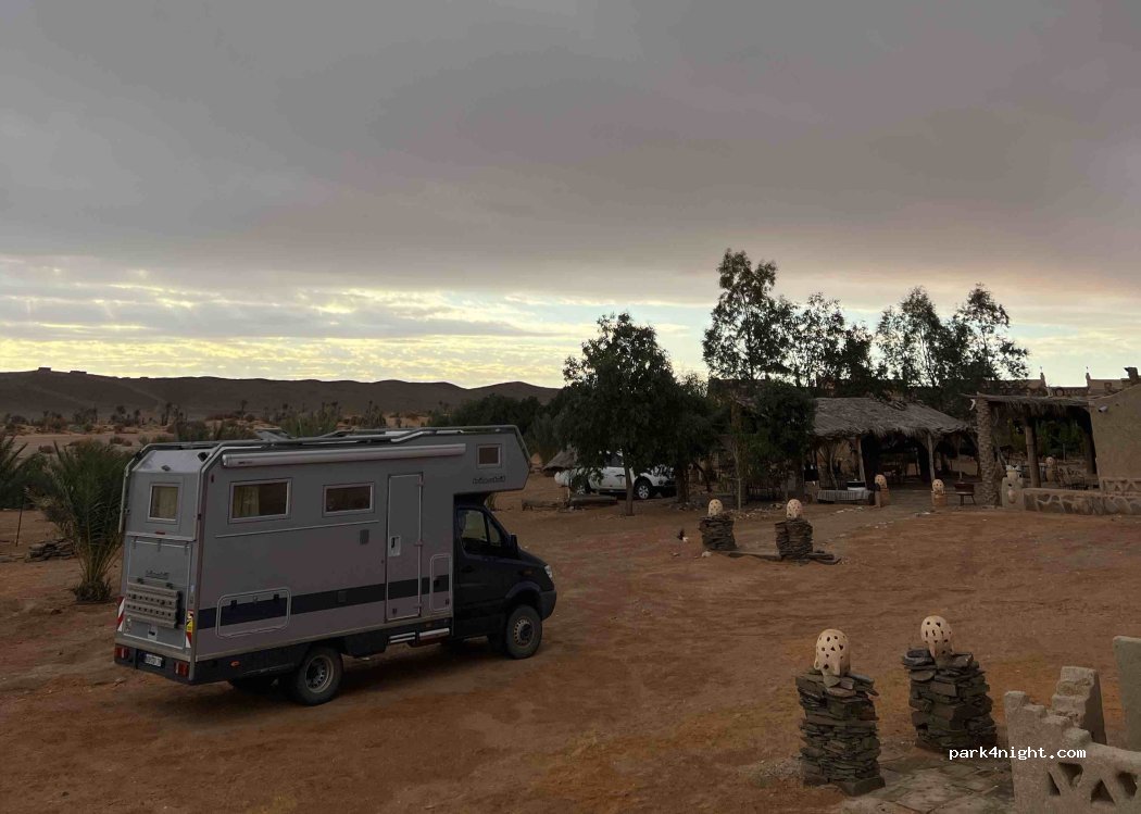 Wat een prachtige plek! Het eten is wat prijzig. Ontbijt (€7 p.p.) en diner (€13 p.p.) maar het was heerlijk en meer dan genoeg. Verblijf is vervolgens gratis. Zeer schoon toilet. Er is een goede nieuwe weg, deze staat nog niet op Google en ligt een paar honderd meter achter de afslag van Google als je van Erfoud komt. De laatste 200 meter zijn onverhard, maar goed te doen met een buscamper.