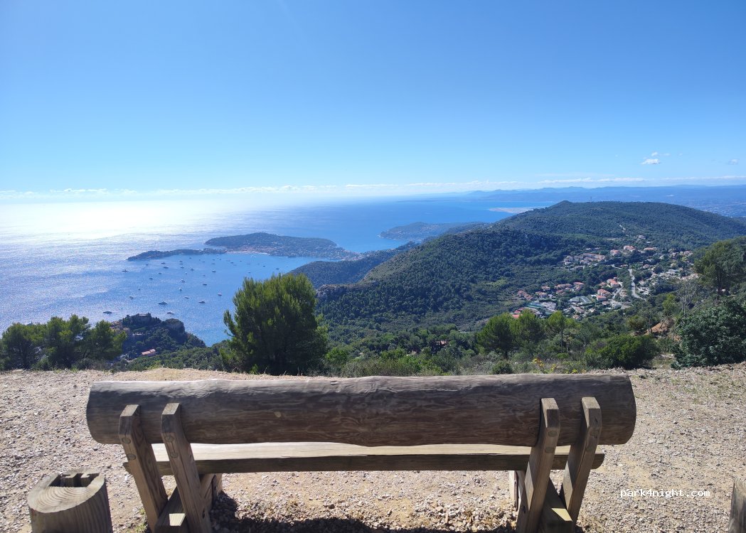 Attention interdit la nuit, au sein du Parc Naturel Départemental de la Grande Corniche le stationnement des véhicules est autorisé uniquement sur les parkings et pendant les heures d’ouverture du parc (7h30-20h du 1er avril au 31 octobre / 8h-18h du 1er novembre au 31 mars). Vue de toute la baie, petite balade possible à pied. Stationnement interdit la nuit. Tables, bancs et poubelles à disposition.
