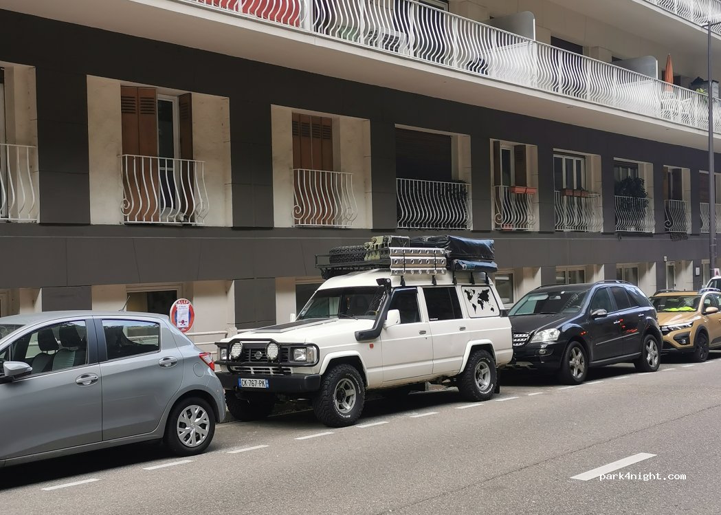 Idéal pour stationné en journée pour les van, 4x4, voiture, etc. Il s'agit de la dernière rue où le stationnement est gratuit à Monaco. (il faut passer juste passer la moitiée de rue et c'c'est gratuit) Nous sommes restés 4h et tout c'est bien passé. À 10 min à pieds du palais et du musée océanographique. À 20 min du centre commercial et Casino.