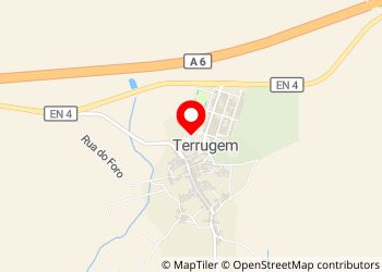 Fairly large P on TERRUGEM village, nearby N4 main road, with artisanal service spot (cassette drain = grid with green rope). Nowadays no shadows because trees shown on second photo were cut. Quiet place, because on the outskirts of the village, illuminated; 4 picnic tables. Friendly and correct restaurants and cafe and traditional shopping in the village (see introduction of adjacent Parking). NOTE: market day on Wednesday and Saturday. Park along the field side.