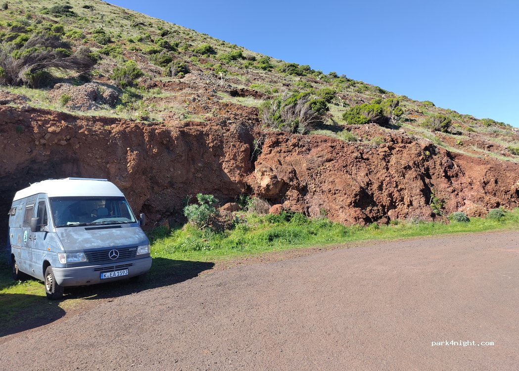 Kleiner Parkplatz für Wanderer. An einer Sackgasse gelegen, daher nachts sehr ruhig, tagsüber nur wenige Besucher. Herrliche Aussicht. Tolle Wanderwege, ein Pool an der Küste ist in 45 Minuten zu Fuß erreichbar… Vorsicht, steiler Abstieg!