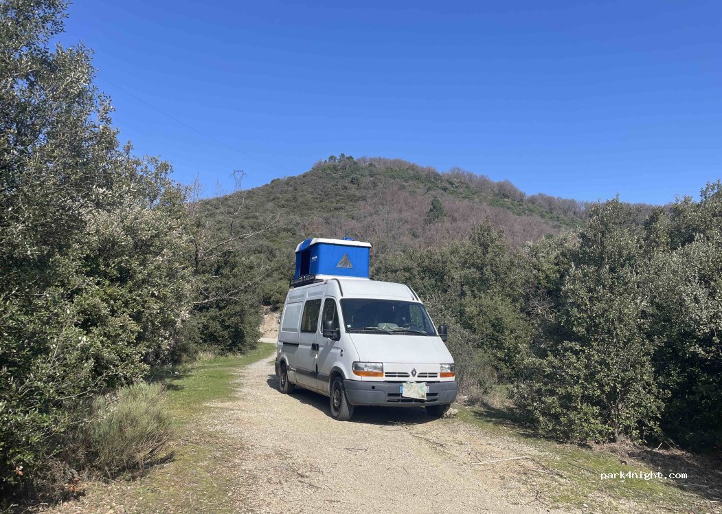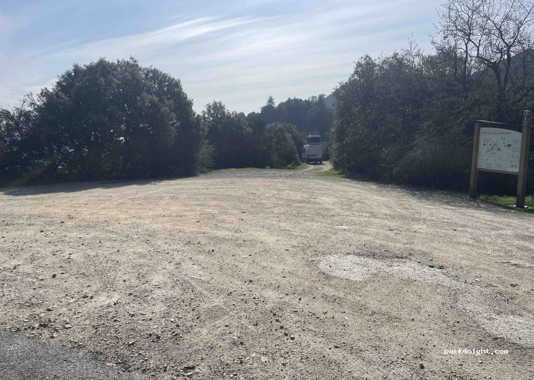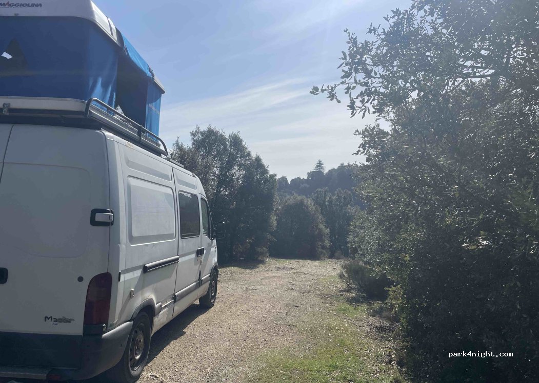Parkplatz am Ausgangspunkt der Canyoning-Tour. Entweder sehr flach und breit, aber direkt an der Straße, oder etwas schmaler und eventuell leicht abfallend, wenn man ein Stück weiterfährt. Wanderwege beginnen in der Nähe. Guter Mobilfunkempfang.