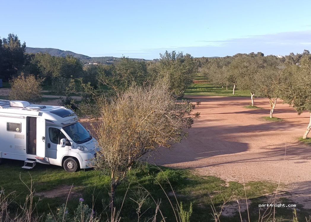 Der Platz befindet sich unterhalb eines Sportplatzes und ist über eine asphaltierte Straße erreichbar, der Platz ist teilweise geschottert bzw. mit Gras bewachsen. Er befindet sich ca. 8 km nördlich von Ibiza-Stadt.