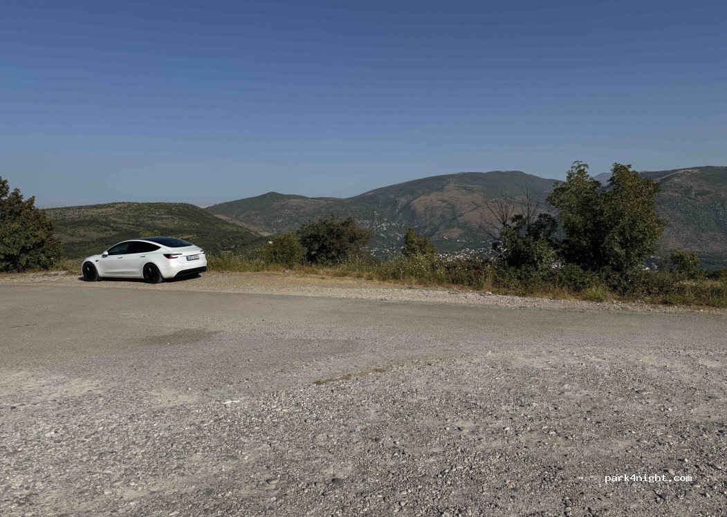 Stayed here for two nights. Positives: - Incredible view of Mostar - Minimal cars driving past Negatives - Litter. It's covered in thousands of wetwipes and condoms - Locals drive up looking for a park for car sex - Any of the secluded parks are covered in litter. You will walk through waste. It's a good spot to park and stay in the car, but it's by far the dirtiest Park4Night we've used