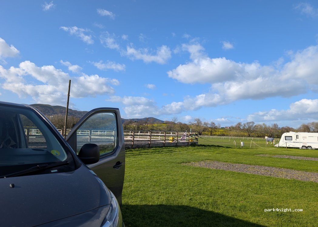 Marlbrook Farm campsite - Adults Only. This is a working equestrian farm with a very basic campsite attached. Great if you want a quiet, peaceful night's sleep and well located for walks onto Castlemoreton Common and the Malverns. Facilities very basic (one toilet and shower) and not particularly clean so more suited to enclosed motorhomes with own facilities. Other campers were visiting the local pub although I didn't go myself. Reasonably priced for a gravel pitch without electric and view of the Malvern Hills from my pitch.