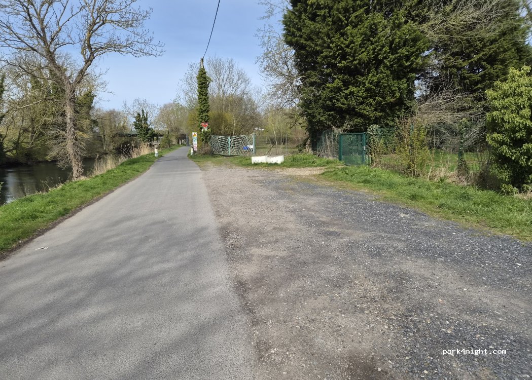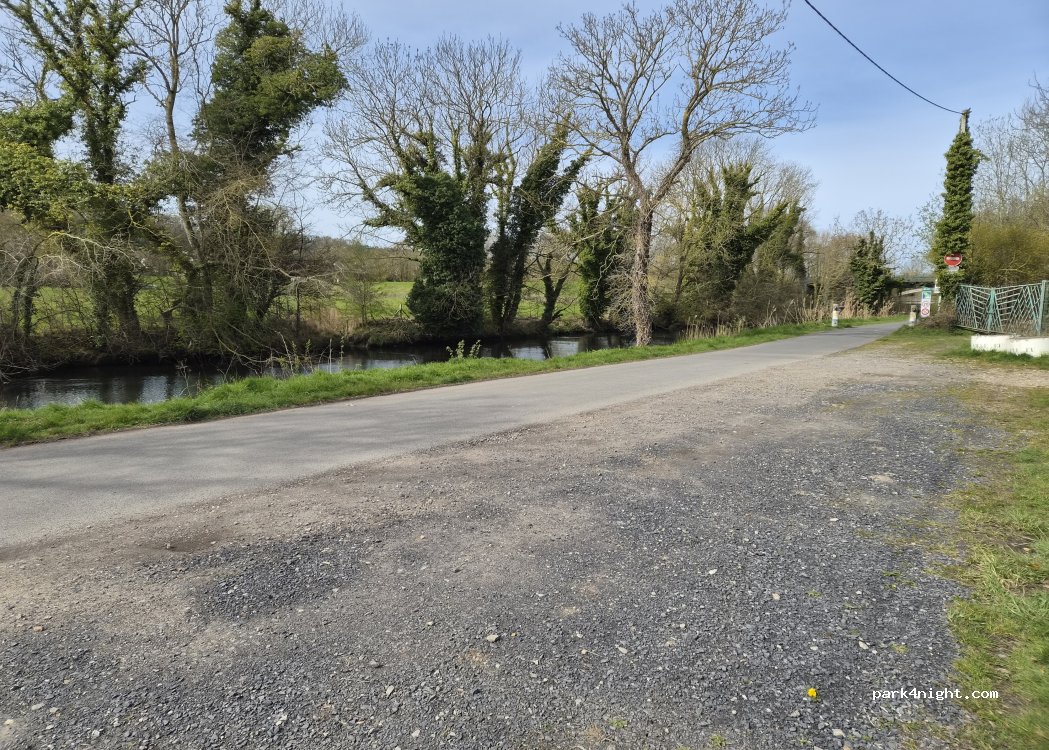 Parking au bord. D'un cours d'eau sur une vélo route derrière le stade municipal pas d'interdiction de stationner jour comme de nuit