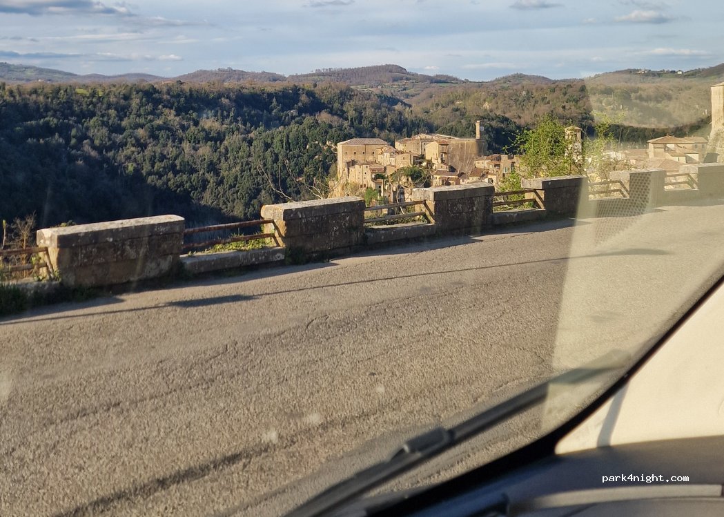 Only for vans and cars with roof tents. Small parking lot with a view of Sorano.