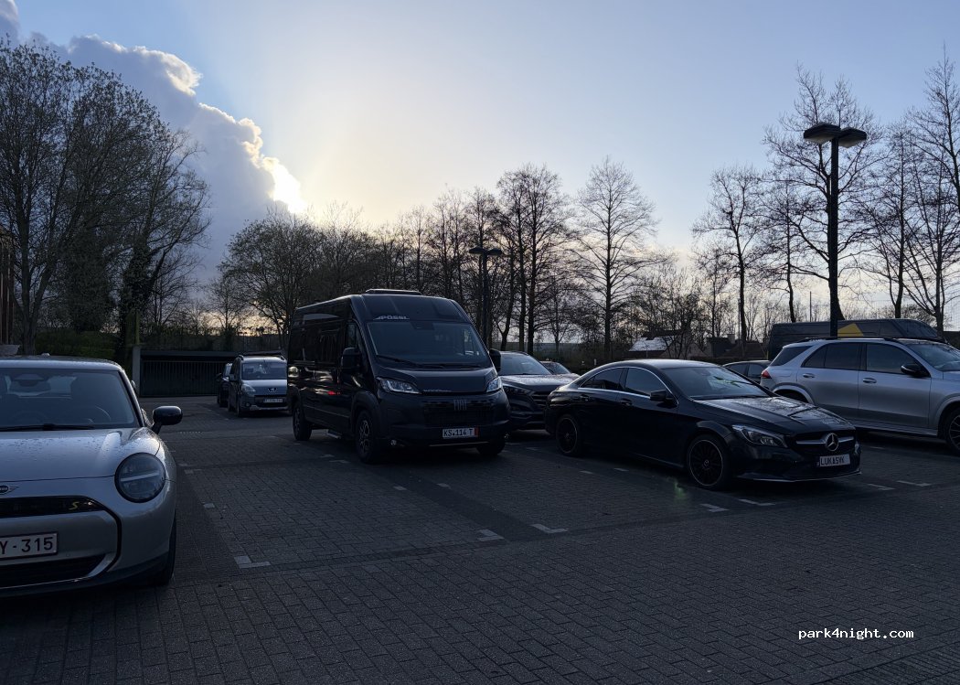 Zeer rustige plaats, ‘s avonds stonden er een paar auto’s, ‘s morgens waren we nog alleen. Je kan best vlak parkeren en je hoort ‘s nachts helemaal niets van verkeers geluiden.