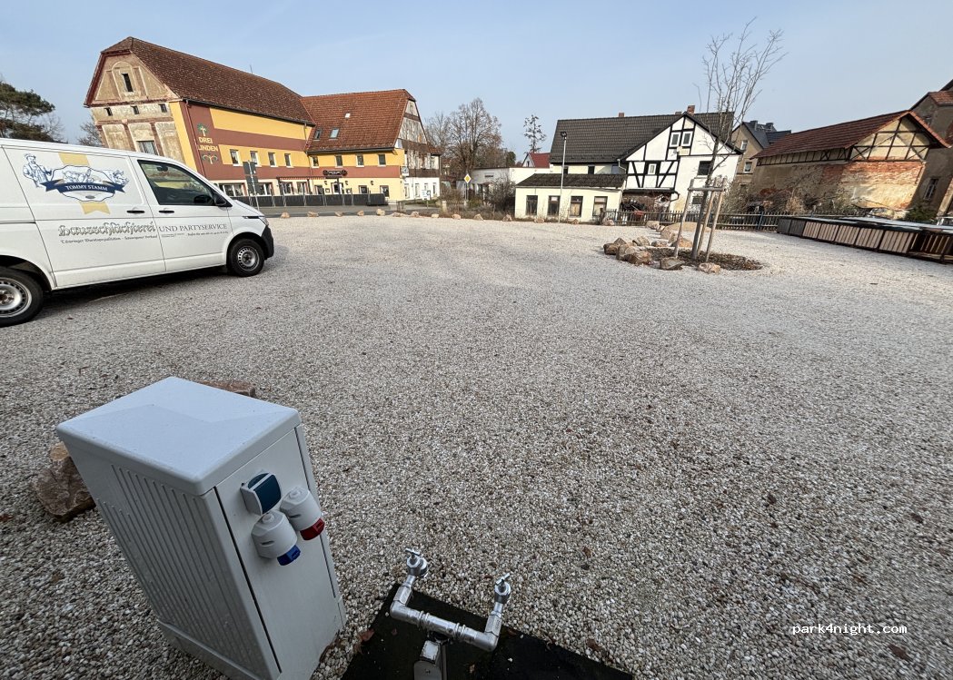 Schöner Stellplatz, auch für Wohnwagen, Strom und Wasser vorhanden. Gaststätte gleich gegenüber. Vermieter wohnt auch gleich gegenüber mit eigener Fleischerei. Kleines nettes Dorf. Freibad hat natürlich jetzt im April noch geschlossen, aber macht von außen einen guten Eindruck, denke da kann man im Sommer schöne Stunden verbringen. Hunde sind auf dem Stellplatz auch erlaubt.