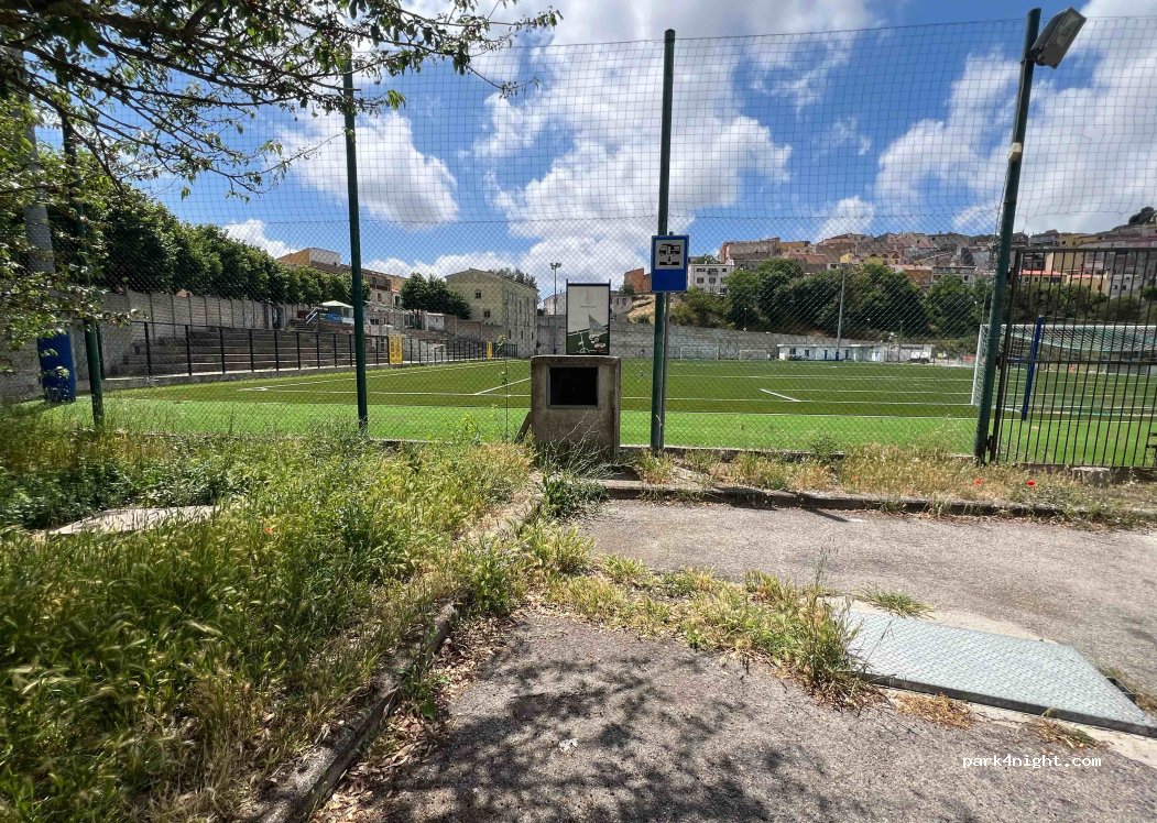 L'area esiste, si trova in un paesino a 600m ma di facile accesso. Ci sono pochi alberi ma coprono bene dal sole del mattino. Verso gli spogliatoi del campetto c'è un cassonetto indifferenziato. La fontanella per l'acqua è funzionante, il tombino per lo scarico è parzialmente murato: buono per lo scarico delle acque grigie, non adatto allo scarico del WC (nautico o cassetta). Panorama fantastico!
