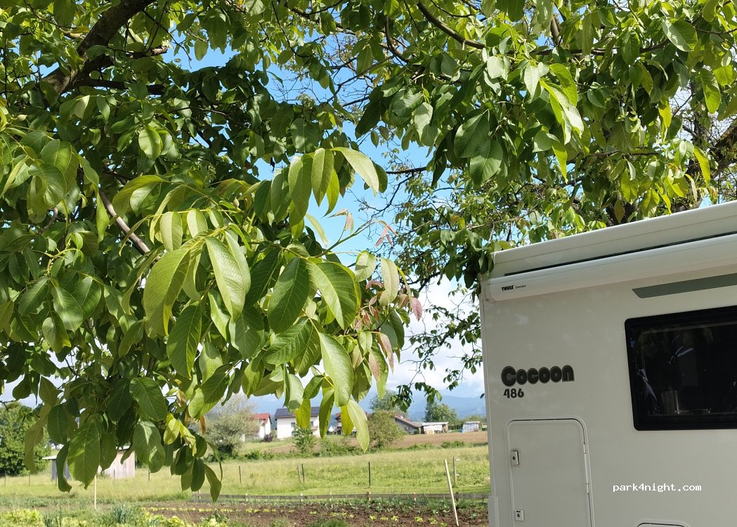Belle halte dans cette ferme. Endroit verdoyant entouré d’animaux et d’un très beau potager. Slovènes très accueillants mais ne parlent que Slovène (a peine anglais) . Avons dîner sur place repas très copieux pour 15 euros et emplacement 10 eur. À côté de l’autoroute mais ne nous a pas gêné pour dormir (avec boules kies) je recommande vraiment ce lieu