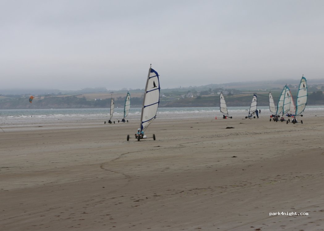 Il y a la plage de Lestrevet, commune de Plomodiern, qui va du parking jusqu'aux chars à voile. Le panneau interdit aux moins de 2,5 tonnes, il est la depuis 20 ans et tout le monde s'en fout. En stationnant sur le front de mer, on ne risque que le coup de Klaxon du fêlé, systématique à six heures du matin quand il va au boulot. Le panneau interdiction aux camping-cars la nuit, cela fait plus de dix ans qu'il est là, sans doute à la demande des cinq campings de la plage. Là encore, tout le monde s'en fout, et en particulier les gendarmes qui passent de temps à autre en saison le soir à six heures. Pour la plage de Pentrez, commune de Saint Nic, qui commence à partir des chars à voile jusqu'à l'extrémité nord de la plage, il y a une interdiction pour les camping-cars, et là encore tout le monde s'en fout hors saison. En saison, on risque des réflexions des commerçants qui bordent la route et à mon avis ce serait justifié.