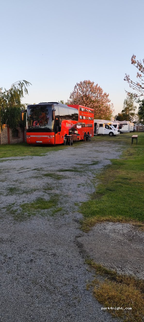 We spent a night here on our way from Czechia to Montenegro. Very friendly owner and his funny black dog. This camp / stellplatz is for some 6 campers. Well equipped but little outdated. Surrounded by beautiful trees, pool and nature. For 25€ it worth to. Two people, camper and electricity. Recommended.