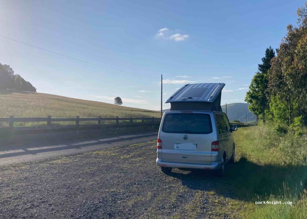 Endroit magnifique, perdu dans la montagne au milieu des pâturages de moutons. Attention de vérifier la route du GPS (il nous a fait passer une petite route au lieu de la route principale). Emplacement au bord d'une route peu passante qui mène à un champ et a une maison. Visite possible d'une arène et une vue sur toute la vallée en montant tout en haut du parc.