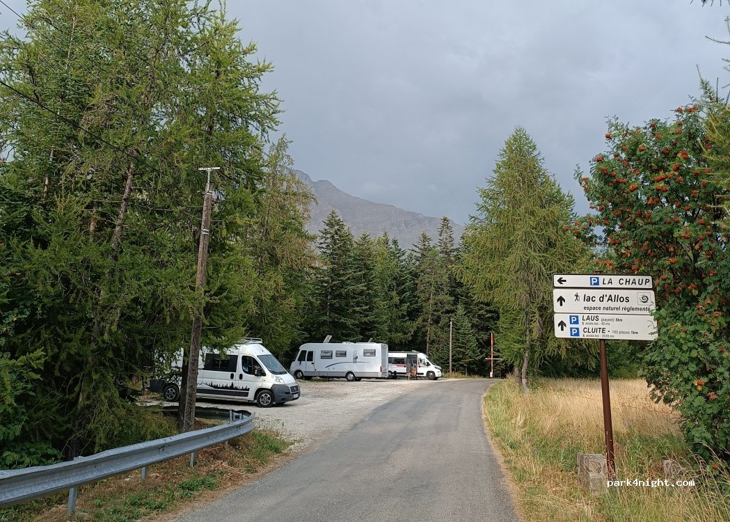 nous avons passé 1 nuit sur ce parking,sur la partie haute la plus plate ,,nuit très calme, dans la forêt mélèze. lac d allos à 2h30 à pied compter 5h A/R. pas de service.
