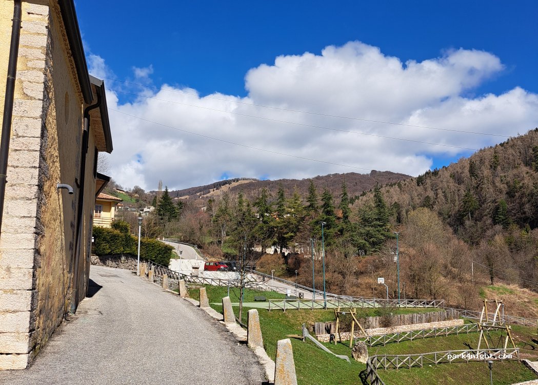 Geweldige plek!! Alles aanwezig. Charmant klein berg dorpje op de mooie Monte Baldo. Verschillende trails op loopafstand, verlicht, camera bewaking, rustig en ja, aan de overkant van de weg ligt een klein en keurig kerkhof, wat maakt het uit? Niet voor grote campers.
