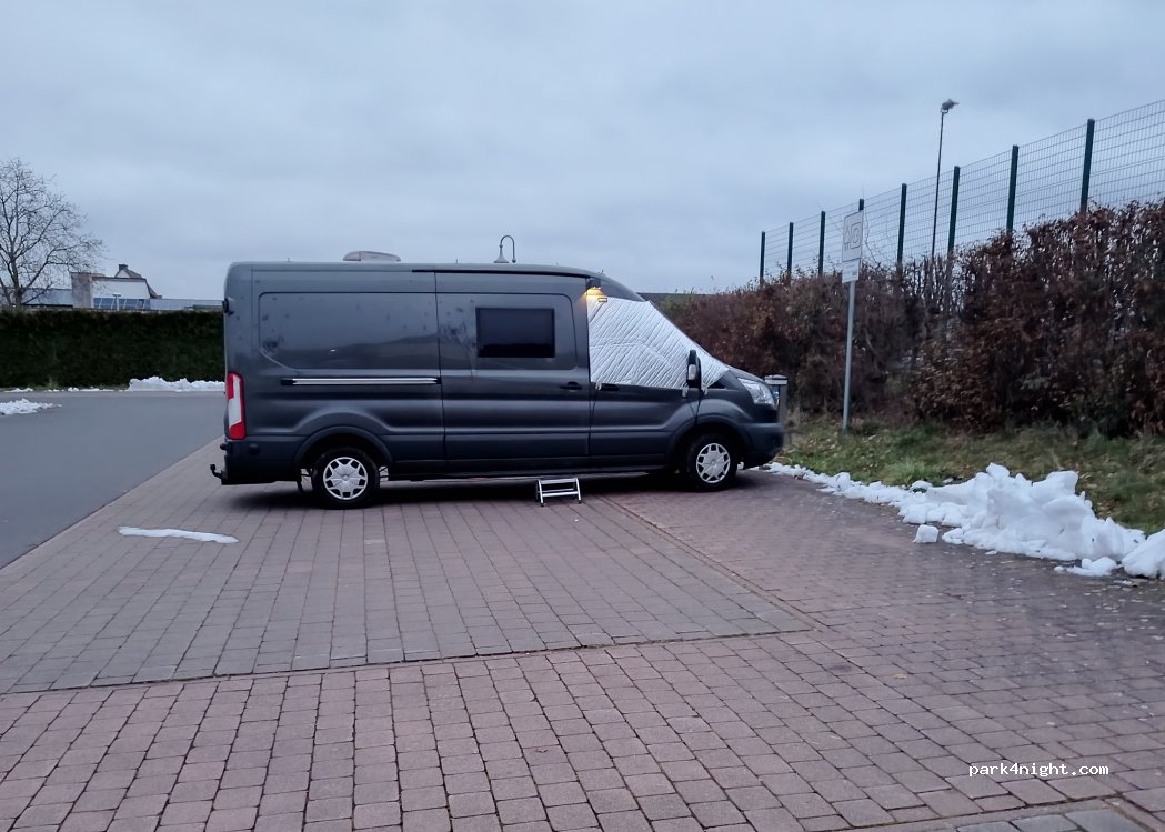 Ein großer Parkplatz mit ausgewiesenem Bereich für Wohnmobile angrenzende Sportplätze und gegenüber einer Grundschule. Abends leichte Lärmbelastung durch Trainingsbetrieb. Leider sind einige Sportler scheinbar Fußkrank, deswegen parken sie auf den Womo Plätzen, obwohl genug andere Plätze frei sind. Ansonsten wirkt der Platz auf uns etwas trostlos. 4 Steckdosen und Grauwasserentsorgung vorhanden.
