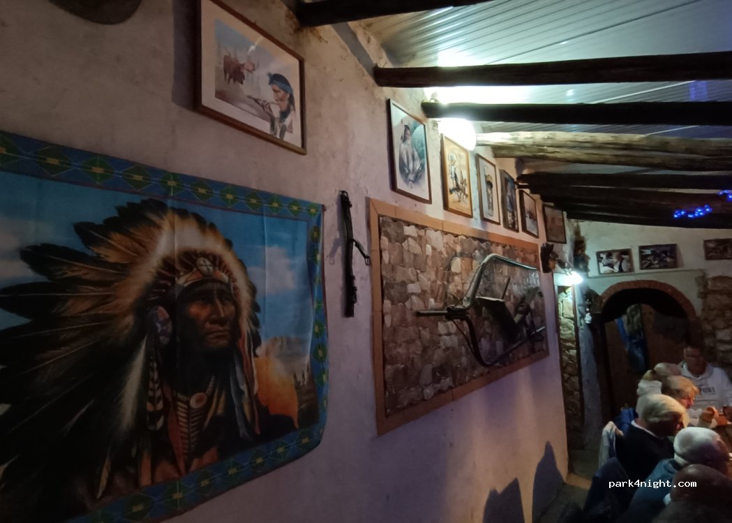Camping Route 66, old-fashioned but nice US-style campsite, animals such as horses, pigs, sheep, etc. run loose on the campsite. Toilet and new showers (50c) available, internet weak to non-existent in the camper, fine at the office. Dogs are not allowed to run loose because of the many stray animals.