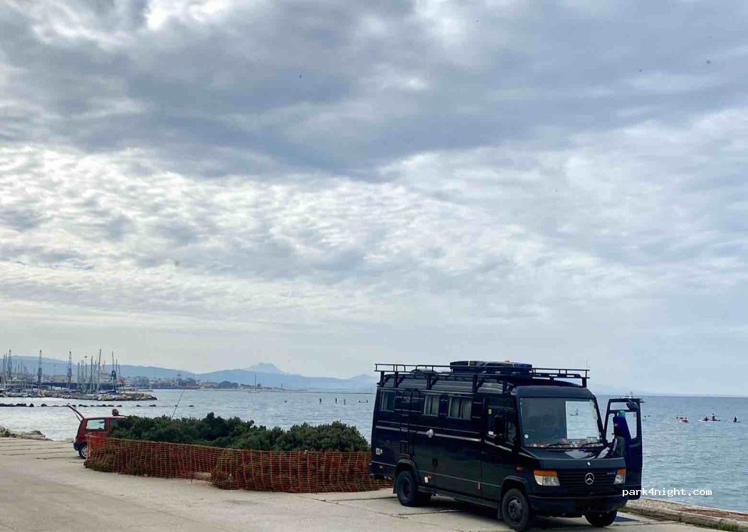Spent 2 nights there end of Oct ‘25. A bit run down but very peaceful. No traffic noise during the night. A small beach a few metres away has a shower. Walking into town was about 30 mins, a taxi €5. Would recommend as a good place to park.