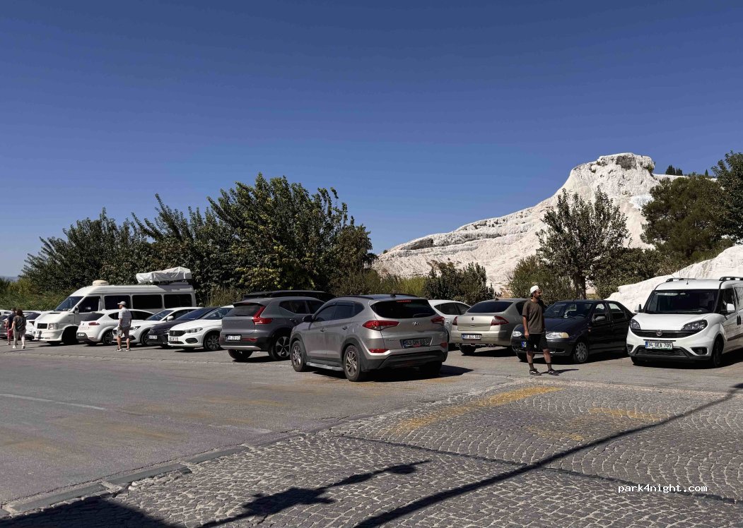 For a day parkup this was great, we arrived 8:30am and were the only people parked, paid 30TL. Easy access to the travertines and visible from the top which is good for peace of mind. We wouldn't stay the night, there are better spots in the area.