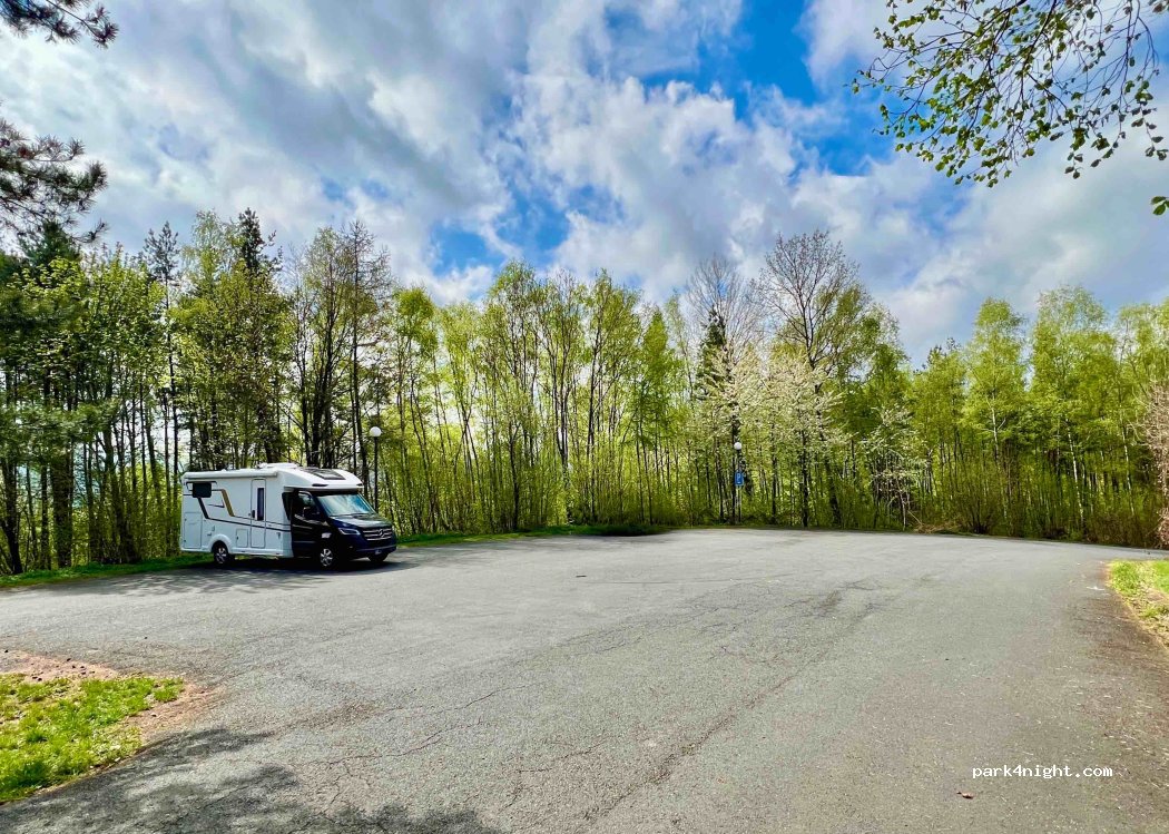 Kleiner Parkplatze, nicht eben. Wenn man auf der Durchreise ist, für eine Nacht gut. Sehr schwaches Internet signal.