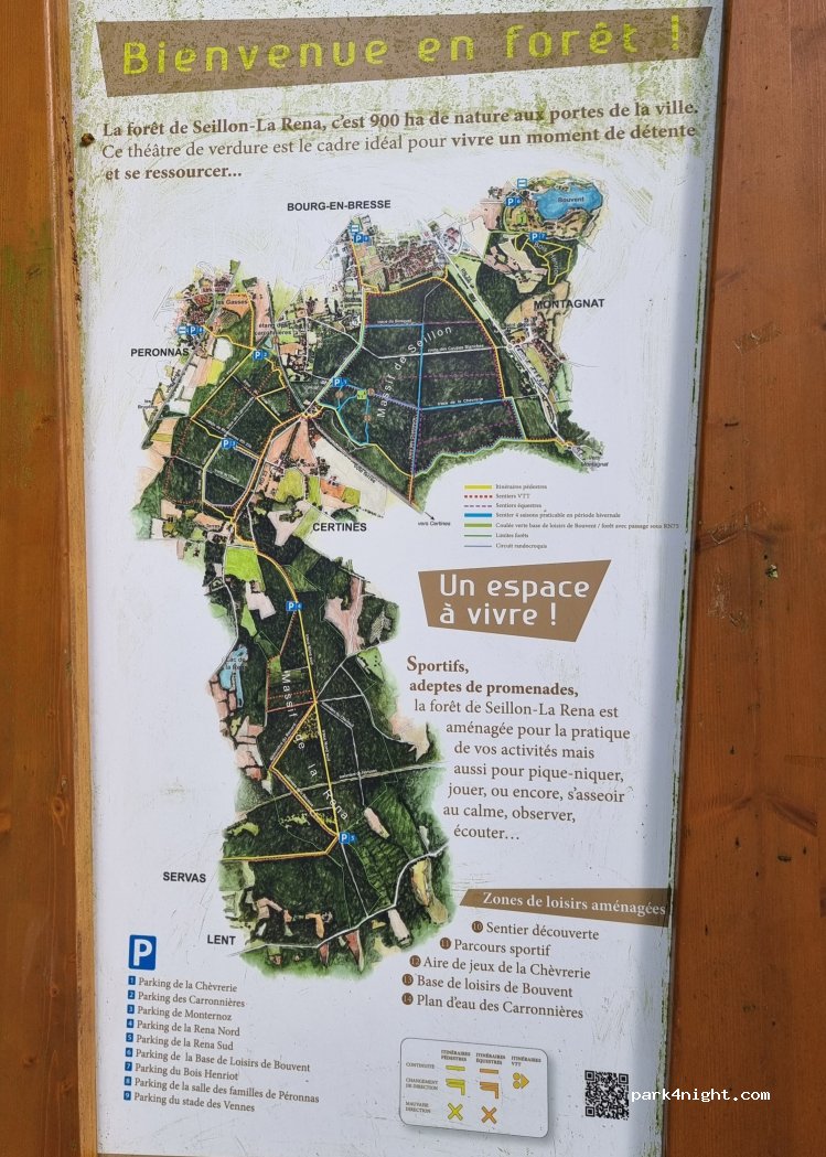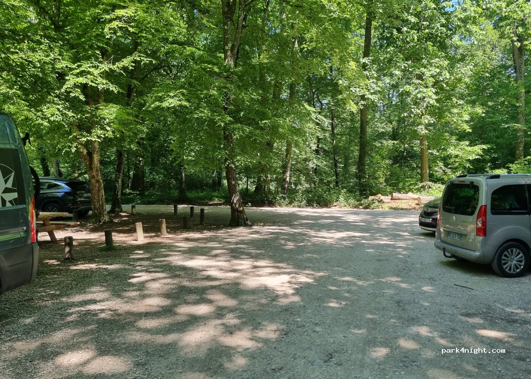 Très bel endroit avec de nombreuses activités nature à proximité (vélo, randonnée, jeux pour enfants…). Entre 7h et 21h, beaucoup de véhicules viennent se garer, mais en dehors de ces horaires, nous avons passé une nuit très calme. Idéal donc pour y dormir.