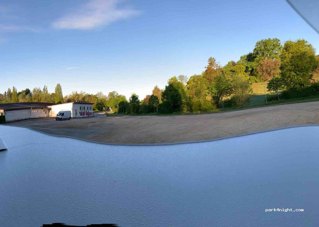 Grands parkings près installations sportives peu d ombre mais personne. nombreuses places. grand espace en herbe super quand on veut être isolé