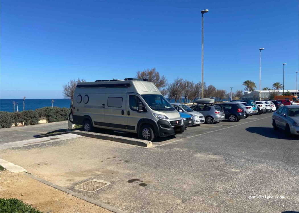 Parking close to the beach, shopping centre and bars/cafes. We had no problem parking here in February but may be restrictions in summer. Quite noisy from traffic and locals but a good spot.